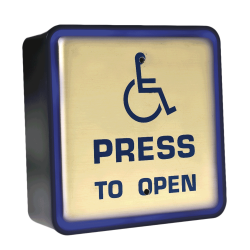 4"(115mm) Hardwired Blue LED Backlit Pushpad With Wheelchair Logo.